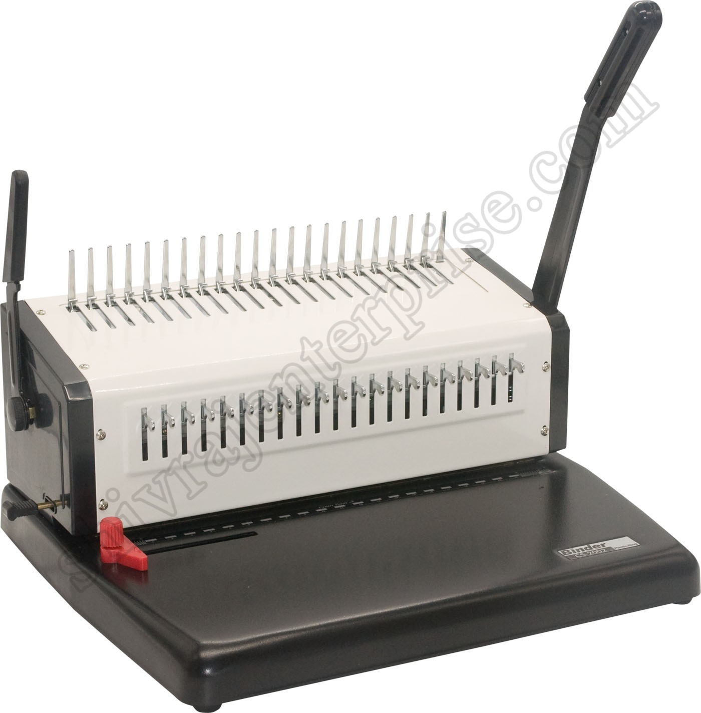 Products information: Max. Punch 15 sheets (80g paper) PVC 6 sheets Max. Binding 380 sheets (38mm comb ring) Adjustable Margin 2.5, 4.5, 6.5mm Number of Holes 21 Holes, all movable cutter Hole size 3*8mm rectangle Hole Distance 14.3mm Size 400*340*220mm Weight 10kgs PRICE:7788/-+ GST